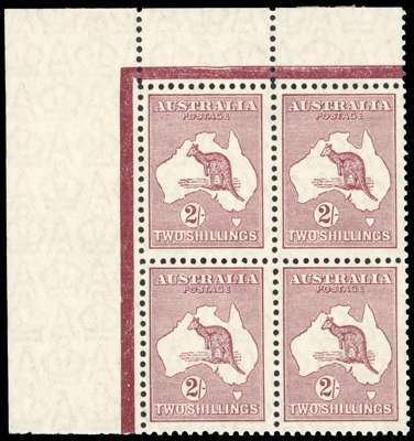 Australia SG 110 1929-30 2s maroon unmounted corner block of 4