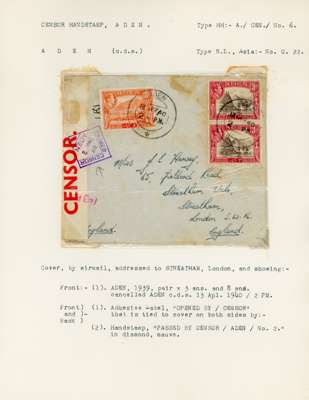 WW2 Censor covers (19) written up on leaves, the leaves having some foxing but the covers mostly fine; good variety of markings