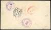 1904 registered envelope to Geo. Lathrop Pack at Lakewood, NJ, redirected to Cleveland. Bears QV ½d, 1d and 2d tied by Type F4A CDSs of JU 22, also 6d. Crown/ REGISTERED on face and Lakewood CDS. Although the 6d is not tied it is likely part of the original franking, since 3½d would underpay the registered rate and no charge was raised