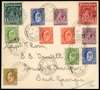South Georgia. 1913 envelope locally addressed to a ship's captain at Husvik Harbour, a (now defunct) whaling station on South Georgia. Bears KEVII ½d, 1d and 2d x 2 each and 1s, and KGV 2d x 2, 3s and 5s, tied by nine good to very fine strikes of the South Georgia CDS Type SG 1 of MY 17. The reverse with embossed Royal Coat of Arms on flap. Unobtrusive horizontal fold, not affecting appearance