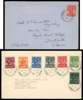 South Georgia. ‘Whale and Penguin’ frankings. 1932 cover to Cheshire bearing ½d (2) and 1d with individual strikes of 17 MR 32 CDS with distorted ‘3’ in year; 1933 envelope with 2½d, unclear CDS, pencil notes ‘posted in S. Georgia’ and ‘from Hadley/ P. Officer/ on RRS Discovery II'; 1936 envelope with set to 1s (including unlisted 4d), individual 16 AU 36 CDSs, slight foxing; 1937 cover with 1d with 15 JA CDS. Highly-catalogued group