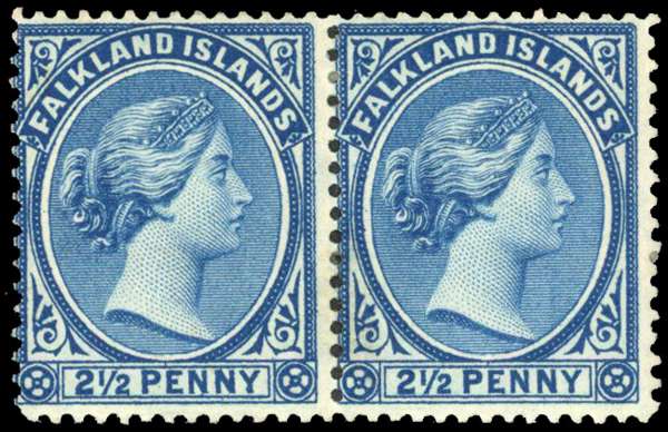 1891-1902 2½d Prussian blue horizontal pair, large part o.g. SG 29, £650.