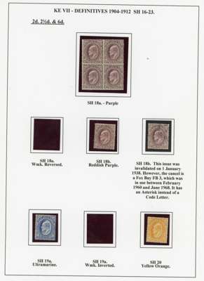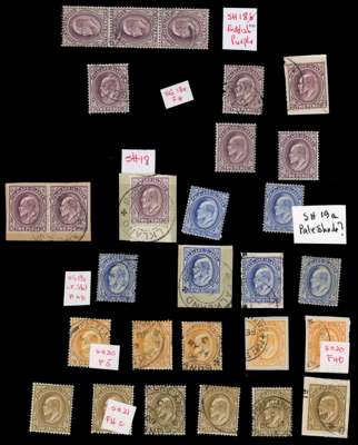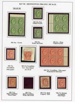 1904-12 set to 1s display collection balance and various on stocksheets, mint and used. The display collection (Heijtz numbers) with a few blocks. Singles include ½d inverted watermark used (one foxed perf), 1d dull coppery red (RPS Certificate 1979) large part o.g., 2d reddish purple large part o.g., and used with posthumous cancel, and 2½d deep blue large part o.g., Brandon Certificate (1982). The stocksheets mostly with used including 2d (9), 6d (5) and 1s (5). SG 43/48.
