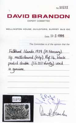 1979 Kelp and Seaweed 11p fine used with black printed double. Brandon Certificate (1998). SG 357var, Heijtz 281v1 (£200).