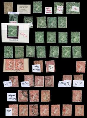 1878-1902 mint, unused and used range (85) on two Hagner sheets. We note SG 16ax unused (one short perf), 30bx part o.g., 33 used, marginal watermarks, FR1 on small piece and 1898 5s used on small registered piece, 1912 CDS, centred right. A good group, worth careful attention. SG 4/42.