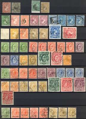 1878-1937 small but valuable used range (92) starting with the 1878-9 set of four plus another 4d with ‘E’ of watermark; 1891 values with shades; 1898 2s6d, also 5s with dubious cancel; 1904 set with ½d and 1d shades; 1912 set with good shades including 1s on thick paper; War Stamp group; 1921 set, and 1929 ‘Whale and Penguin’ set (10s dubious cancel)