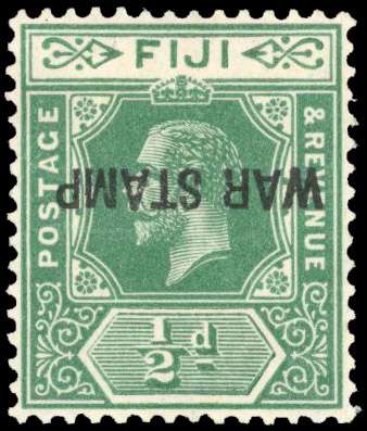 Fiji SG 138c 1915-19 ½d green War Stamp error overprint inverted unmounted