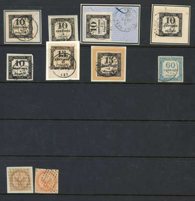 1849-78 used selection arranged on hagner sheets including 1853-61 1c on piece, 1870-71 Bordeaux 5c, 20c (4, two on piece), Postage Dues 1859-63 10c (5, four on piece), 15c on piece, 1871-78 60c blue; also French Colonies with unmounted mint 'FRANCE LIBRE' overprints on Madagascar 1943 1f75 (SG 246), Reunion 1943 to 20f with Airs (SG 195-244). Generally fair to fine. (116).