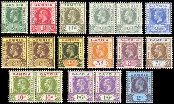 Gambia SG 86c/99a btwn 1912-22 ½d to 2s mint group with Split A variety