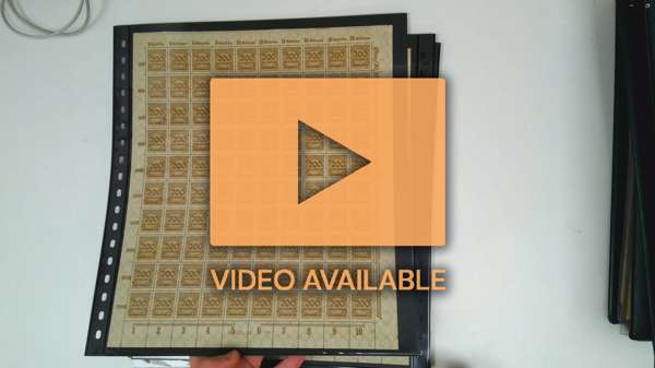 1923 Oct/Nov an extensive accumulation of perforated complete sheets housed in nine Lindner volumes with 500 Tsd M (20), 1 Mio M (68), 2 Mio M (4), 4 Mio M (57), 5 Mio M (36), 10 Mio M (60), 20 Mio M (22), 30 Mio M (8), 50 Mio M (44), 100 Mio M (44), 200 Mio M (55), 500 Mio M (45), 1 Mrd M (39), 2 Mrd M (20), 5 Mrd M (16), 10 Mrd M (33), 20 Mrd M (33) and 50 Mrd M (17); nearly all in fine condition, and many of the sheets show different margins at sides and top, different Han numbers, a very fine basis for further study.