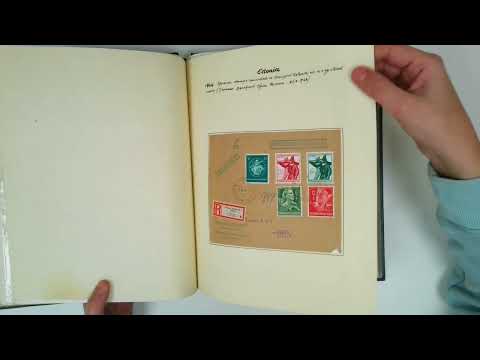Album with collection consisting 1941-43 Hitler Head overprints single set and marginal blocks of four unmounted o.g., engraved set of 18 used on two registered Pernau covers, forerunner cards, Third Reich issue covers from Pernau, some incoming mail including double-censored 1941 cover from San Francisco, other censored mail from Denmark, Netherlands, Norway, Sweden and Ukraine (44 covers or cards)