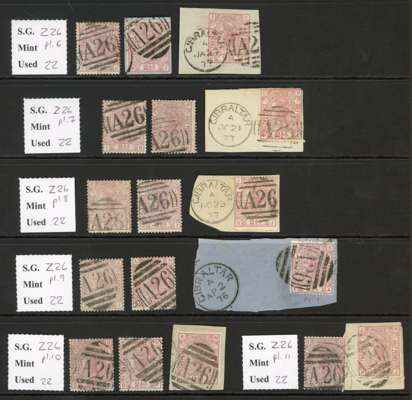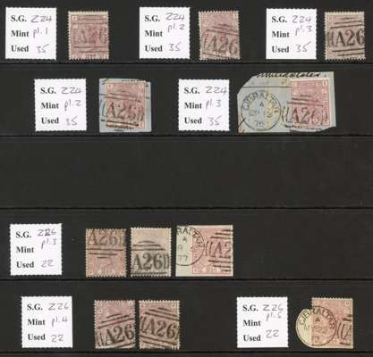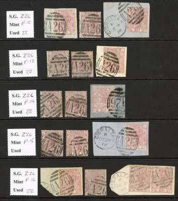 Great Britain used in. Lightly duplicated accumulation of GB 1875-79 2½d rosy mauve (both wmks), each with part to large part “A26” numeral or duplex cancel, neatly presented and identified on stockpages with at least one of every plate present (less the rare plate 17). Odd imperfections nevertheless much above average for such a group with mostly very fine strikes. SG Z24, Z26, cat £1033+ (44)