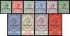 1912-24 set of ten overprinted SPECIMEN Type D12 or D14, large part o.g. with the 2s - £1 very lightly mounted. The 1d with a small foxed area at top, the 1s with adhesion on reverse, otherwise fine. SG 76s-85s, £550