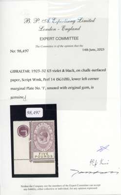 Gibraltar SG 108 1925-32 £5 violet and black mint