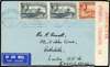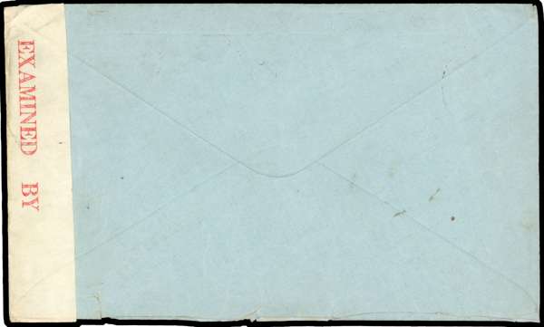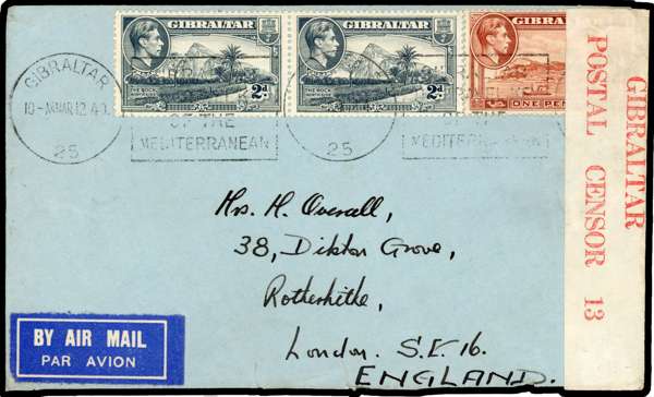 1940 2d grey perf 13½ watermark sideways coil pair on cover with 1d, tied by ‘Travel Key’ machine cancel of MR 12. Censor tape at right. Unusual on cover. SG 124ab