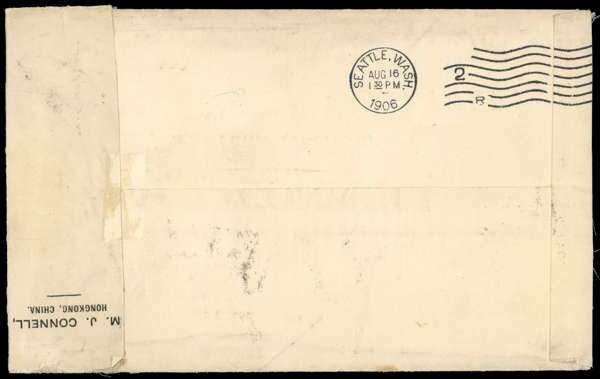 Hong Kong 1906 printed 'M.J. Connell' cover to Seattle, USA, SG 67, 79.