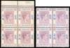1938-40 and 1945 $1 lilac and blue, chalky and ordinary papers, in unmounted o.g. blocks of four. Fresh for these. SG 155, b, £136