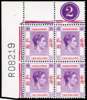 1952 $2 blue-violet and scarlet on chalky paper top left corner block of four with Requisition R and Plate 2, fine unmounted o.g. R1/1 LP notch in DOLLAR character. SG 158a, £220