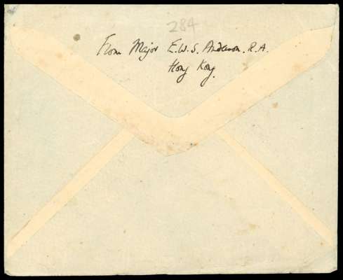 1941 airmail envelope to Dorset bearing sole franking of $5 dull lilac and scarlet, Victoria CDS of 20 MY. Large (9rather faint) triangular Censor. Endorsed BY ATLANTIC CLIPPER/ PACIFIC CLIPPER. Slight wrinkling and ageing, but a good rate cover