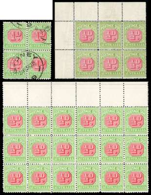 POSTAGE DUE: 1902-30 mint (mostly unmounted) and used selection comprising single stamps to blocks up to 18, mostly positional, wmk and frame/plate varieties, fine condition an interesting lot. SG D38w-D91.