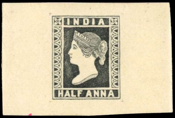 1890 essay with Crosses in upper corners, ½a black die proof on parchment paper, with four large to massive margins. Fine. Spence 121.
