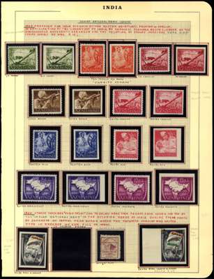 Indian National Army. Azad Hind low values imperf and perf (18 in all) large part o.g., 1r black and orange unmounted o.g., 1r black, orange and green marginal unmounted o.g. but with stain at top, and Chalo Delhi 1a plum unused (without gum as issued). (21)