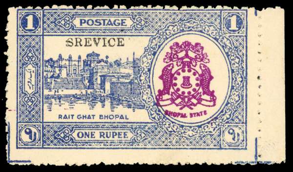 Officials. 1949 1r dull blue and bright purple, right marginal with R6/6 SREVICE error, large part o.g. SG O342a, £250