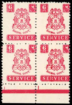 Officials. 1945 6a carmine lower marginal block of four, unmounted o.g. Centred right but remarkably fresh, SG O355, £160