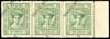 1940 1a on 1½a green marginal strip of three with surcharge inverted, o.g., some foxed spots and reinforced splitting but good appearance. Only one sheet of eighty existed. Ex Harell. SG 35b, £360