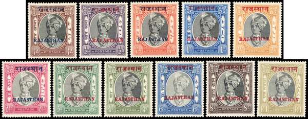 1950 overprints on Jaipur set of eleven, fine large part o.g. SG 15-25, £180