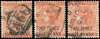 1890 2½d on 4d red-brown, three used varieties. One surcharge double with ‘A66’ cancel, one impression placed diagonally, with RPS Certificate (1983); one PFNNY with K normal, and the third PFNNY with broken K for Y. SG 30b, c, ca, £455