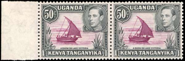 1950 50c dot removed left marginal pair, R9/1 with dot remaining. Large part o.g., fine. SG 144eb, £550