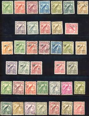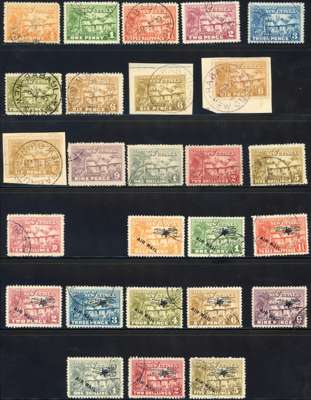 1925-39 used collection, almost complete. 1925 set with extra 6ds and Airmails to 5s; 1931 to 5s and Airmail set less 5s; 1932 set and Airmail set; 1935 £2 and £5, the latter with some short perfs; 1939 set. Officials 1925 set (6d bistre dubious cancel, 6d yellow-brown undated Kavieng), 1931 set and 1932 set (4d faked postmark). Some short perfs in places, as often with these perf 11 issues. Catalogued £4500+