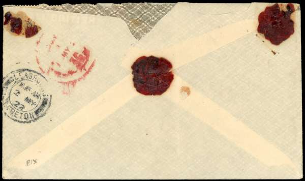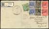 1922 registered cover to England bearing 1922 optd “MALAYA/BORNEO/EXHIBITION” 1c and 4c (lower stamp with variety small middle “A”) in vertical pairs together with definitive 2c and 10c (2) tied by Penang cds for ‘6.AP.1922’ , showing ‘AR” in circle alongside, the reverse with London transit and Leabrooks arrival cds for 2 MY; small part of back flap missing and a couple of pinholes and slight toning, still a scarce usage in period for the overprints. Btwn SG 219/242d.