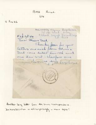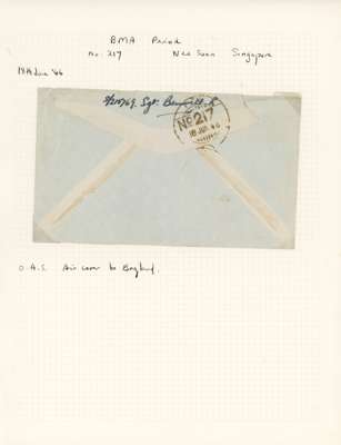 1945-6 OAS BMA covers (8) from the stampless period. FPO S-16 to UK, Reserve FPO-614 to Somerset (2 from the same correspondence, each with long letter home); the remainder Indian-type CDSs with FPO 18 (3) and 217 (Nee Soon, 2 covers). A little mixed but mainly good