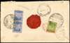 1926 registered envelope to London bearing 1911-15 8c (vertical pair) and 1921-28 5c on reverse and tied by ‘TEMANGAN/KELANTAN/12 MAY 26” (type D2) cds and the latter tied by London E.C. hooded registered oval for JU 26, also Kota Bahru and Penang transit cancels, the front with R2 and R4 registration hs (both the earliest recorded dates of use) and London arrival cds. Opened on three sides for display, otherwise fine and rare. SG 5, 18.