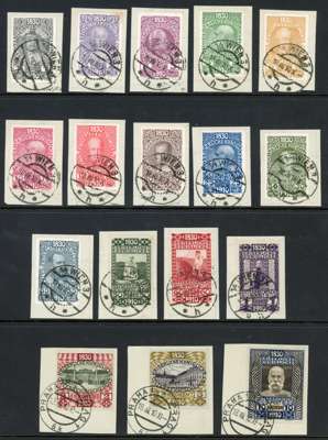 1910 80th Birthday of Francis Joseph 1h to 10k, set of seventeen all tied to individual pieces, neatly tied with Wien (lower values) or Prag (top three values) day of issue "18.VIII. 10" cancellations. An attractive set and generally fine. SG 223/239, £1,400.