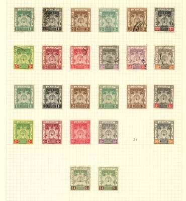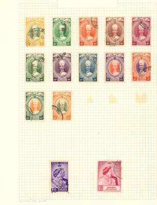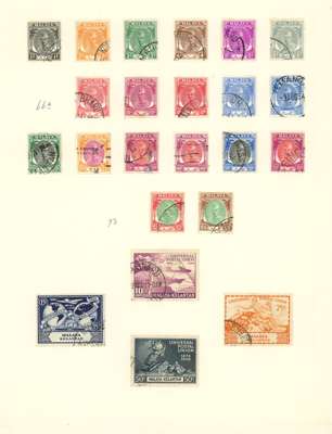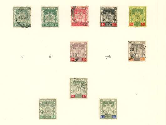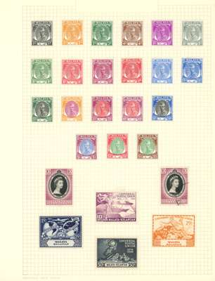 1911-65 (179) collection on leaves. Includes 1911 set o.g. and $1 green and emerald used, 1921 set mint less 30c and complete used, Malaya-Borneo set o.g., also block of four 1c o.g. (a bit toned) one with EXHIBITION clearly double, 1928 and 1935 $1 perfs o.g., 1937 set o.g. and to 50c used, Wedding o.g. and used, 1951 set mint and used each less 30c (used $2 and $5 with Singapore CDSs). Generally clean.