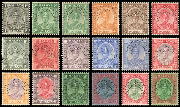 Malaya - Pahang 1935-41 set of eighteen perforated SPECIMEN, SG 29s/46s