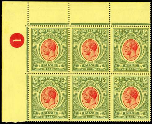 Montserrat SG 48 1914 5s KGV plate block unmounted