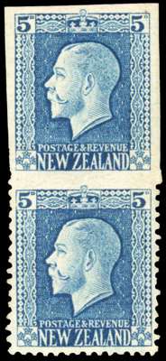 New Zealand SG 424aa 1915-30 5d light blue pair error imperf mint