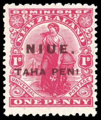 Niue SG 21a 1917 1d Dominion variety No stop mint