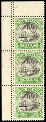 Niue SG 55a 1932 ½d strip of 3 with mixed perfs mint
