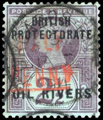 1893 HALF PENNY Type 5 on 2½d, Forcados River CDS JA 3 94. BPA Certificate (1992). SG 17, £250