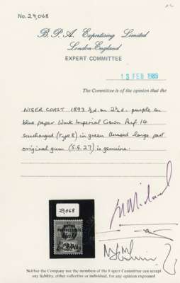 1893 ½d surcharge Type 8 on 2½d large part o.g., which is slightly stained. Signed Oliva and with BPA Certificate (1989). SG 27, £550