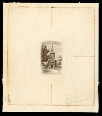 1919-21 pictorial issue 4d vignette die proof in reddish brown on wove paper (59x67mm) showing guide crosses and dated 30-6-25 with a small diagonal crease in the lower right corner, still very fine. SG 84var, Ex Vestey