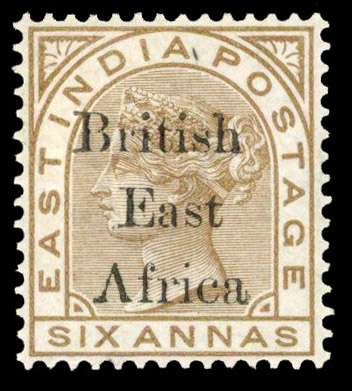 1895-96 6a pale brown opt type 8 on India, variety OVERPRINT DOUBLE, ONE ALBINO, large part o.g. fine. SG 56d