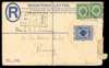 POSTAL HISTORY: 1921 10c blue registered stationery envelope (size G) to Penang uprated with 2c