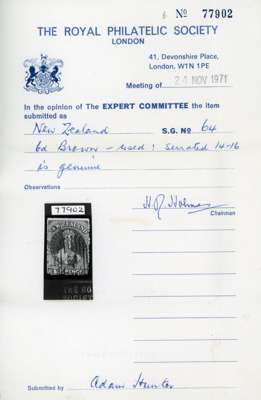 1862-64 wmk large star, 6d brown serrated perf 14-16, used by numeral and London arrival mark in red, very fine. RPSL Certificate (1971) SG 64 £700