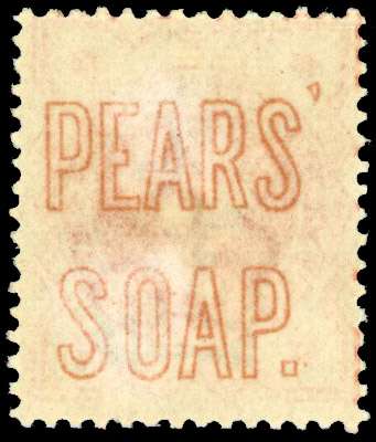 1887-92 ½d vermillion with “PEARS' SOAP.” advertisement on back in orange. unmounted o.g. (mounted on obverse only) with a light diagonal crease, otherwise a presentable example of this issue. SG 197var, Spec. K27m